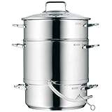 797806040 Entsafter-Set besteht aus: -1 x Glasdeckel. -1 x Fruchtkorb. -1 x Silikonschlauch. -1 x Topfunterteil. -1 x Saftkorb. Entsafter-Set Features: -Güteglasdeckel mit Cromargan Steckrand zum Sichtkochen. -Ergonomische Griffe. -TransTherm -Allherdboden. -Mit dem WMF Entsafter können Sie auf schonende Art aus Früchten oder Gemüse Saft gewinnen udn Früchte ohne Konservierungsstoffe und chemische Zusätze verarbeiten. -Der moderne, platzsparende Entsafter überzeugt durch die verschiedenen Module die auch einzeln verwendet werden können, wie z.B. als Fruchtkorb und Kochtopf mit Deckel. -Beim Entsaften im Dampf werden die Früchte nicht gekocht, sondern nur erhitzt, so bleiben Aroma, Farbe, Geschmack, Mineralien und Vitamine erhalten. Entsafter-Set Produktdetails: -Material: Cromargan Edelstahl Rostfrei 18/10. -Material (Deckel): Güteglas Cromargan Edelstahl Rostfrei 18/10. -Spülmaschinengeeignet. -Durchmesser: 26cm.